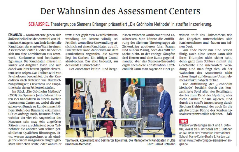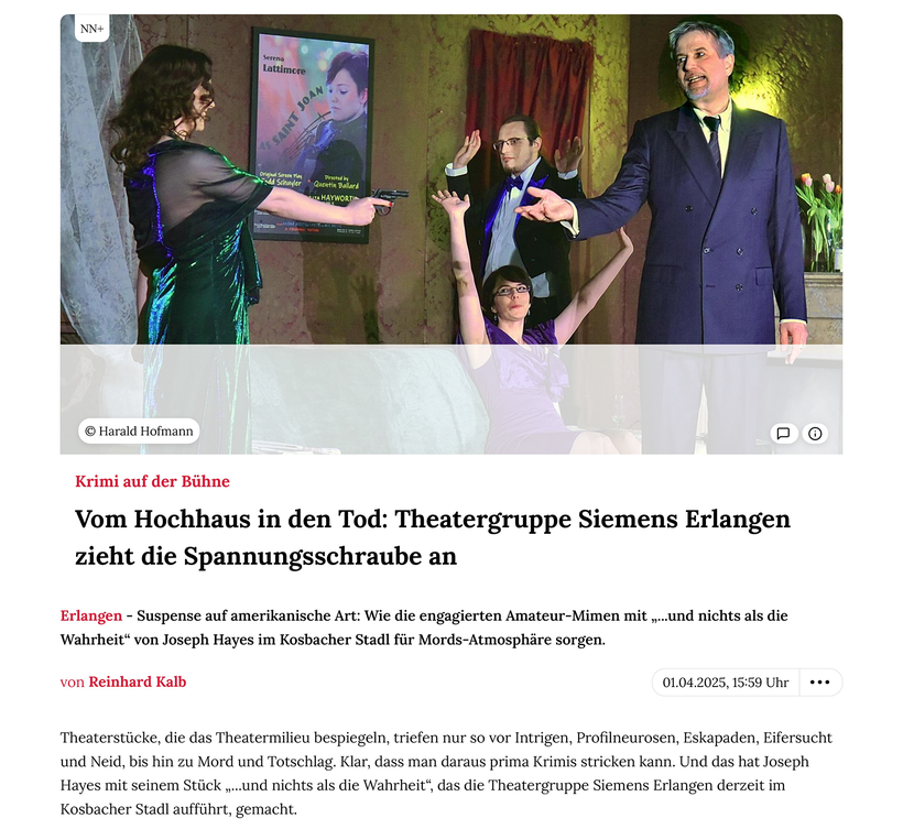Früher war alles besser. Die Theatergruppe Siemens Erlangen kündigte ihr nächstes Stück an und die Zuschauer strömten. Heutzutage braucht es etwas Besonderes, ein Alleinstellungsmerkmal, um in der Menge der Freizeitangebote nicht unterzugehen. Aber was?